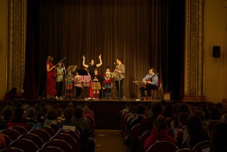 V krásném prostředí Raisova sálu v Národním domě na Vinohradech jsme 14.3.2012 provedli více jak 200 dětí světem hudby vážně i nevážně při výchovném koncertě. Skvělé dětské publikum nás odměnilo svou pozorností i bouřlivým potleskem. Těšíme se zase příští školní rok.